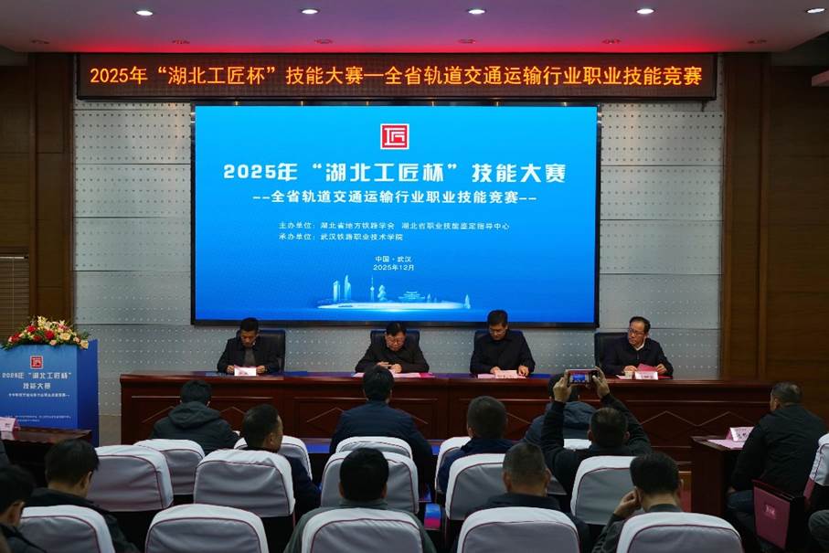 12月6日,2025年度“湖北省工匠杯”技能大赛——全省轨道交通运输行业职业技能竞赛,在武汉铁路职业技术学院举行。湖北省职业技能鉴定指导中心主任肖平、湖北省地方铁路学会会长于胜利以及武汉铁路职业技术学院党委书记徐恒楚以及相关单位负责人应邀出席。